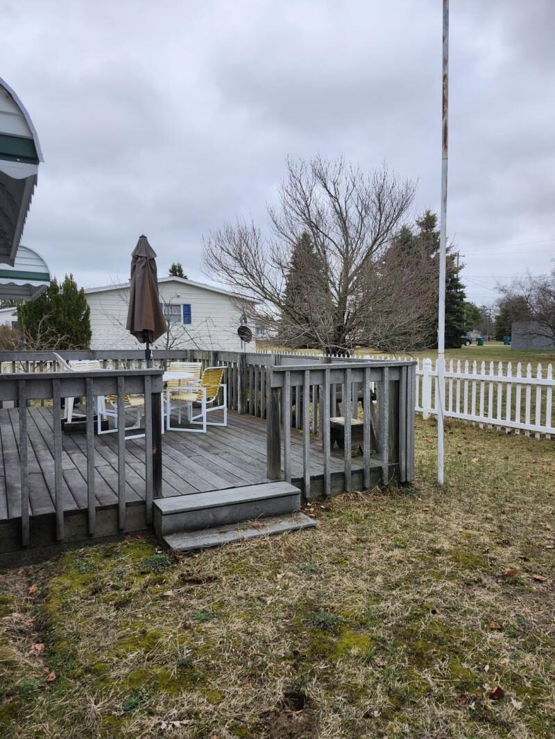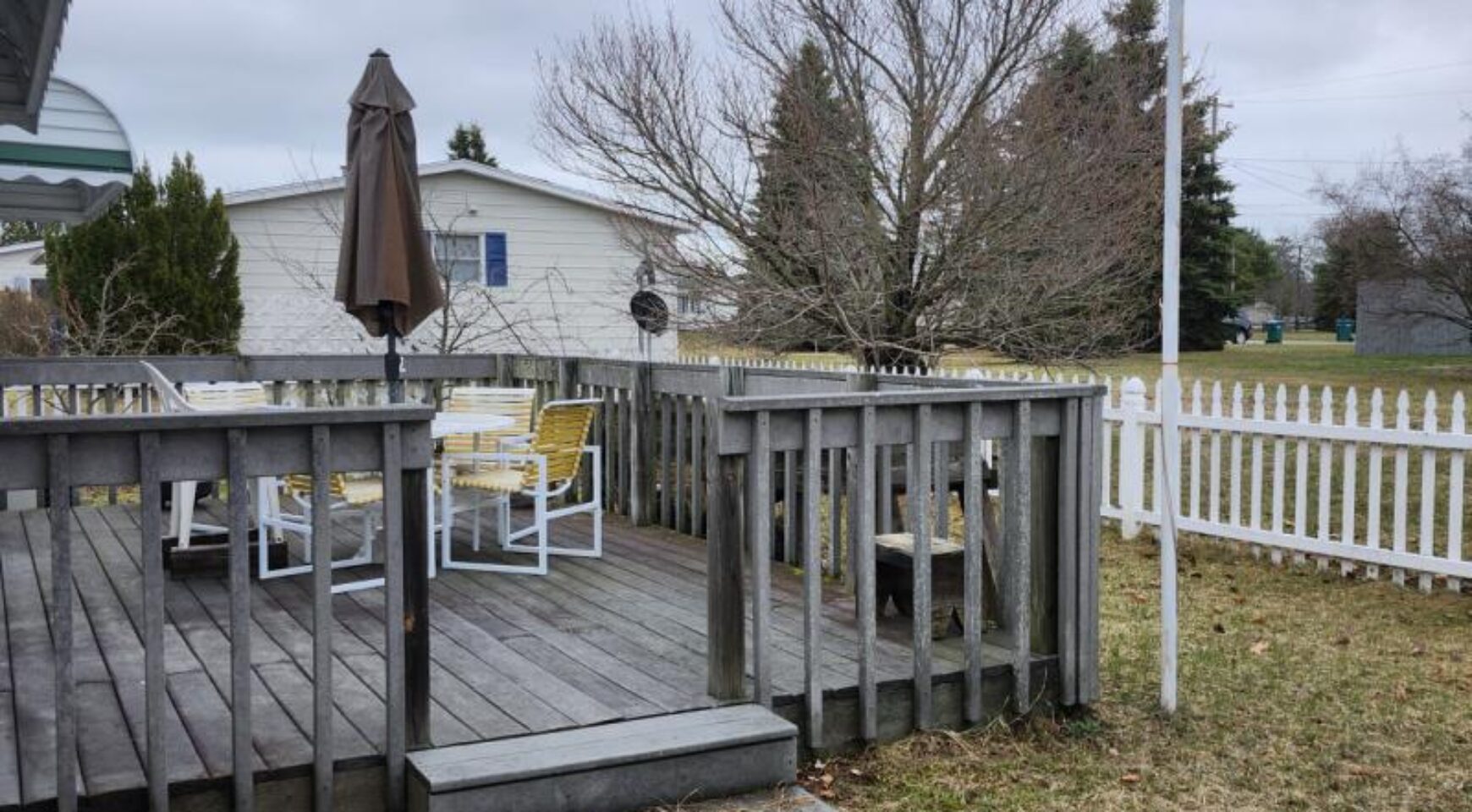 Ranch home in the Villages of Oscoda on large lot with 2 bedrooms and 1 1/2 baths. Bright kitchen with lots of natural light. Oak cabinets and white appliances include a refrigerator, glass top range, and dishwasher. A peninsula separates the kitchen from the spacious dining and living area. Master bedroom has lots of closet space with private bathroom. Third bedroom was converted to a large laundry room with a walk-in tub. The comfortable composite deck off the kitchen back door is great for summer cookouts. Oversize garage with storage rooms. There’s even an 8×12 shed in the back yard for extra storage! Low monthly HOA fees include trash removal and lawn maintenance. Just a short walk to the AuSable River and minutes from downtown Oscoda and Lake Huron.